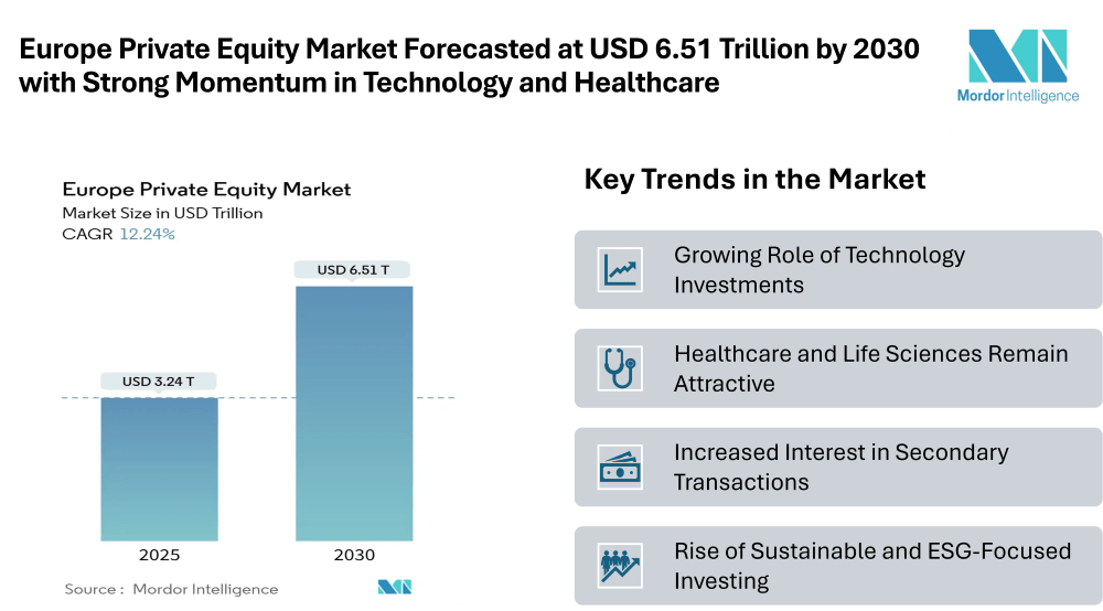 The Europe private equity market is entering a period of strong growth, underpinned by diverse opportunities across fund types, sectors, and geographies. With an estimated market value of USD 6.51 trillion by 2030, the sector is expected to maintain its momentum, driven by robust investor demand, resilient performance across technology and healthcare, and increasing adoption of ESG principles.
